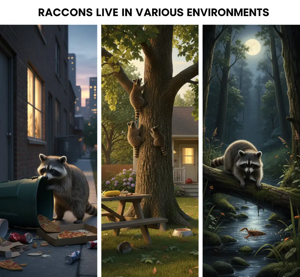 Raccoons Live in Various Environments